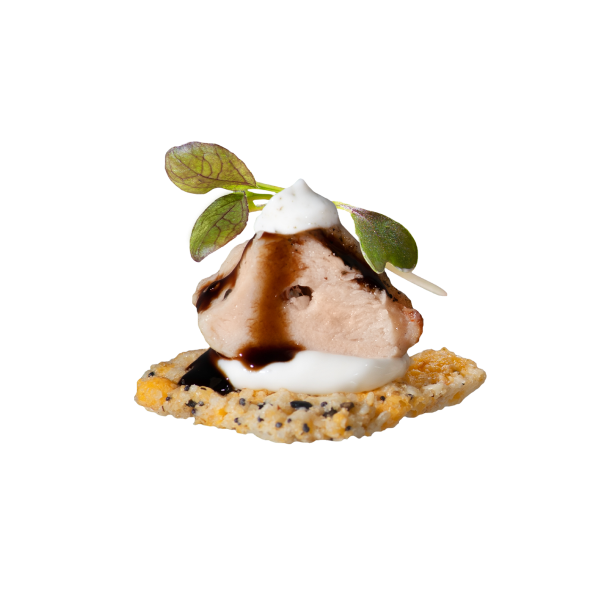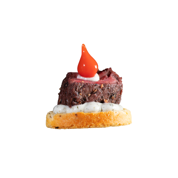 - Passed and stationary hors d’oeuvres and canapés that are unusual yet approachable.